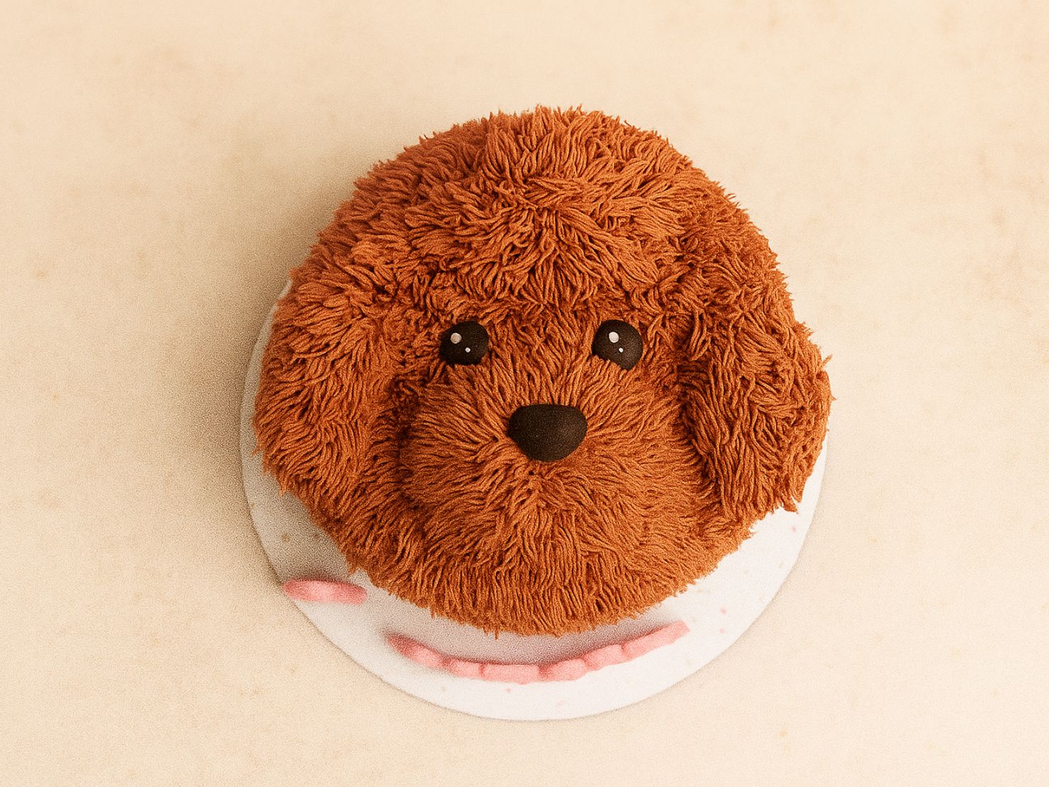 Poodle dog face cake features soft icing to look like a poodle's fluffy fur, with big, friendly eyes and a sweet nose, making it a perfect, fun treat for celebrating your poodle's birthday or special occasion. Your dog would love it.